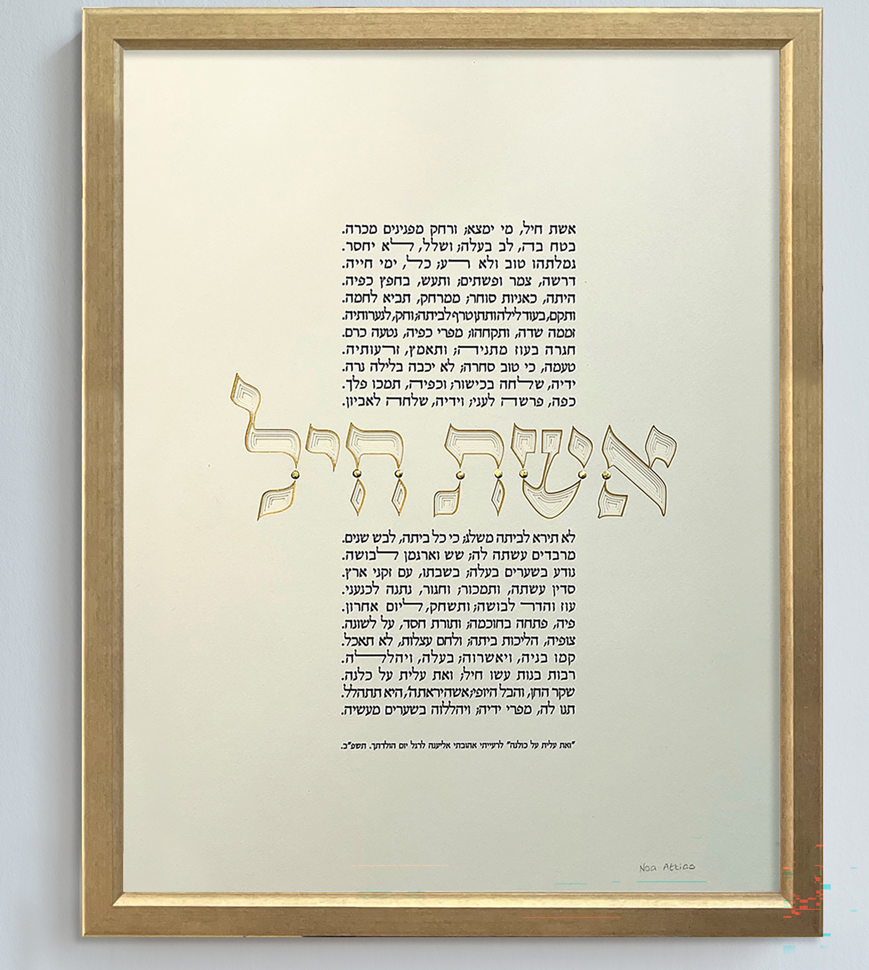 The Woman of Valor, called “Eshet Chayil” in Hebrew, is a hymn which is customarily recited on Friday evenings, after returning from synagogue and singing “Shalom Aleichem” and before sitting down to the Shabbat evening meal.