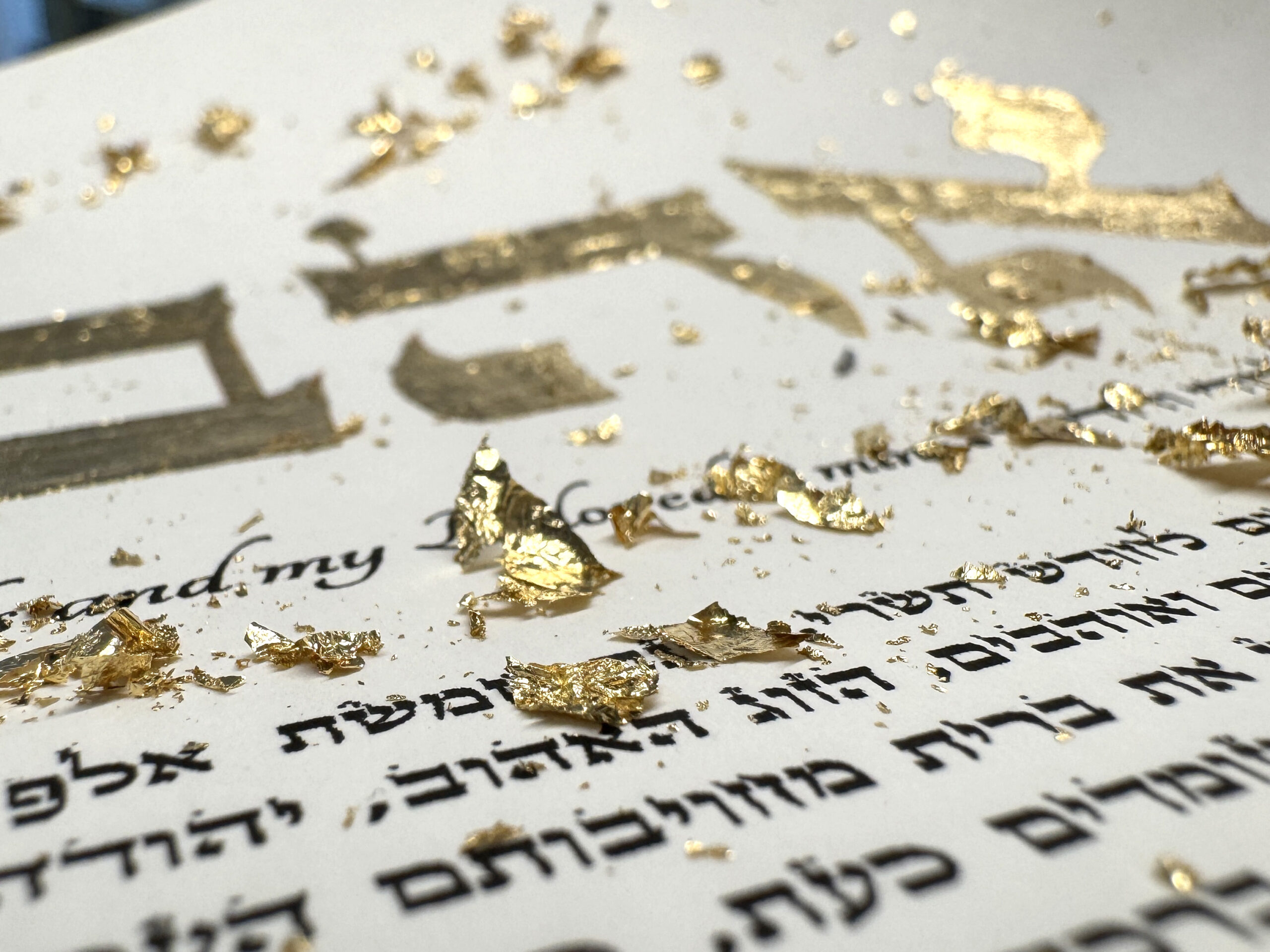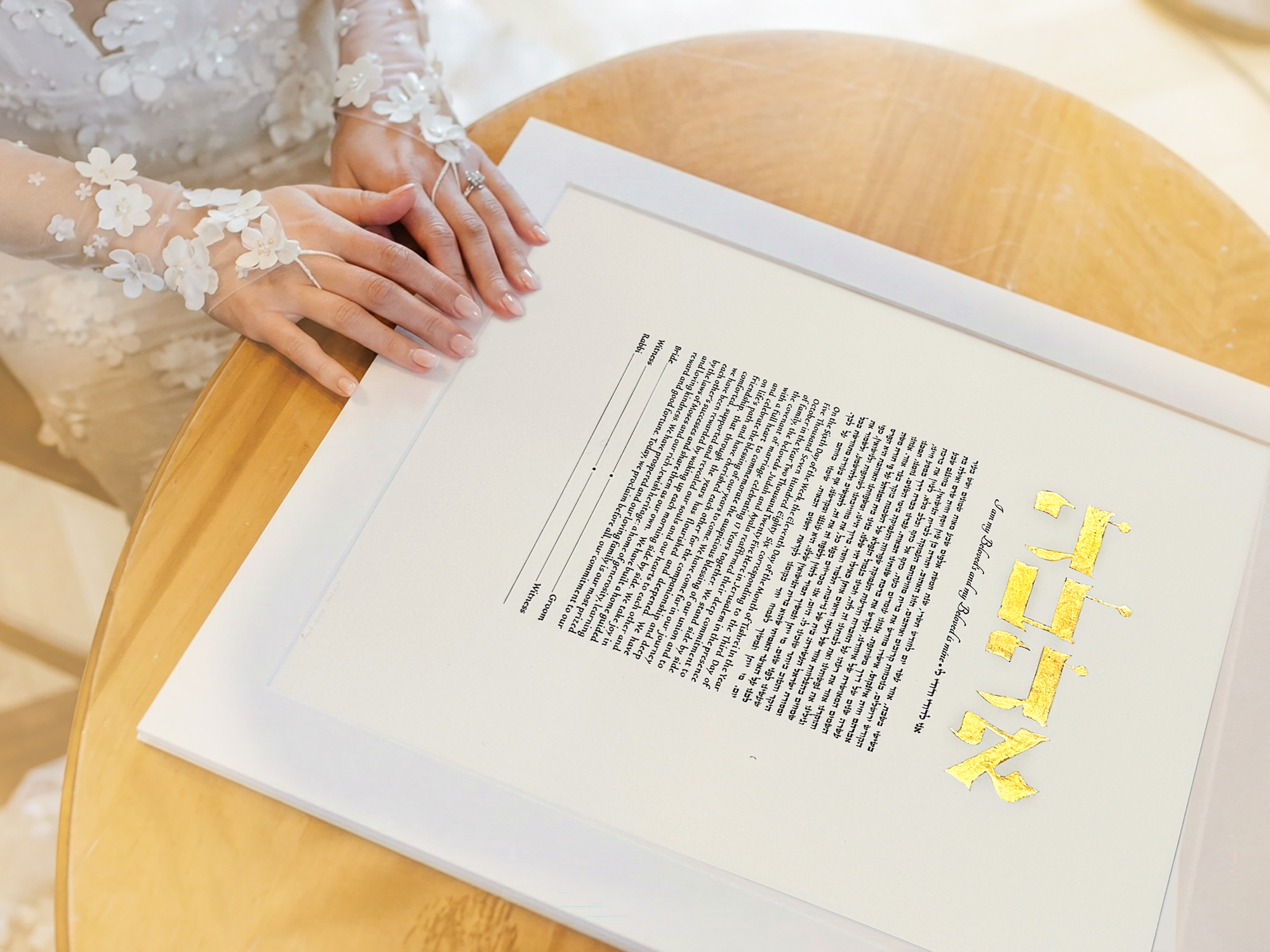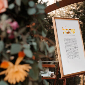 Moreover, this contemporary Jewish wedding artwork can be created with a gold print or with luxurious 24-karat gold. As a result, it becomes a timeless keepsake and a meaningful piece for your home.