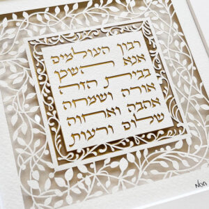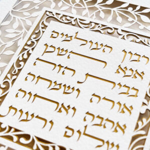 This Birkat Habayit blessing for the home is a Hebrew Jewish prayer displayed in the home. (Can be made in English) – “May this home be blessed with happiness and Joy, Light, Friendship, blessing, and peace”.
