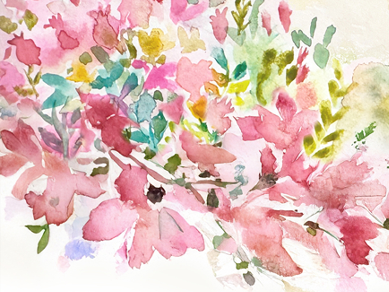● Color palette: Blush pinks, soft greens, warm stone tones