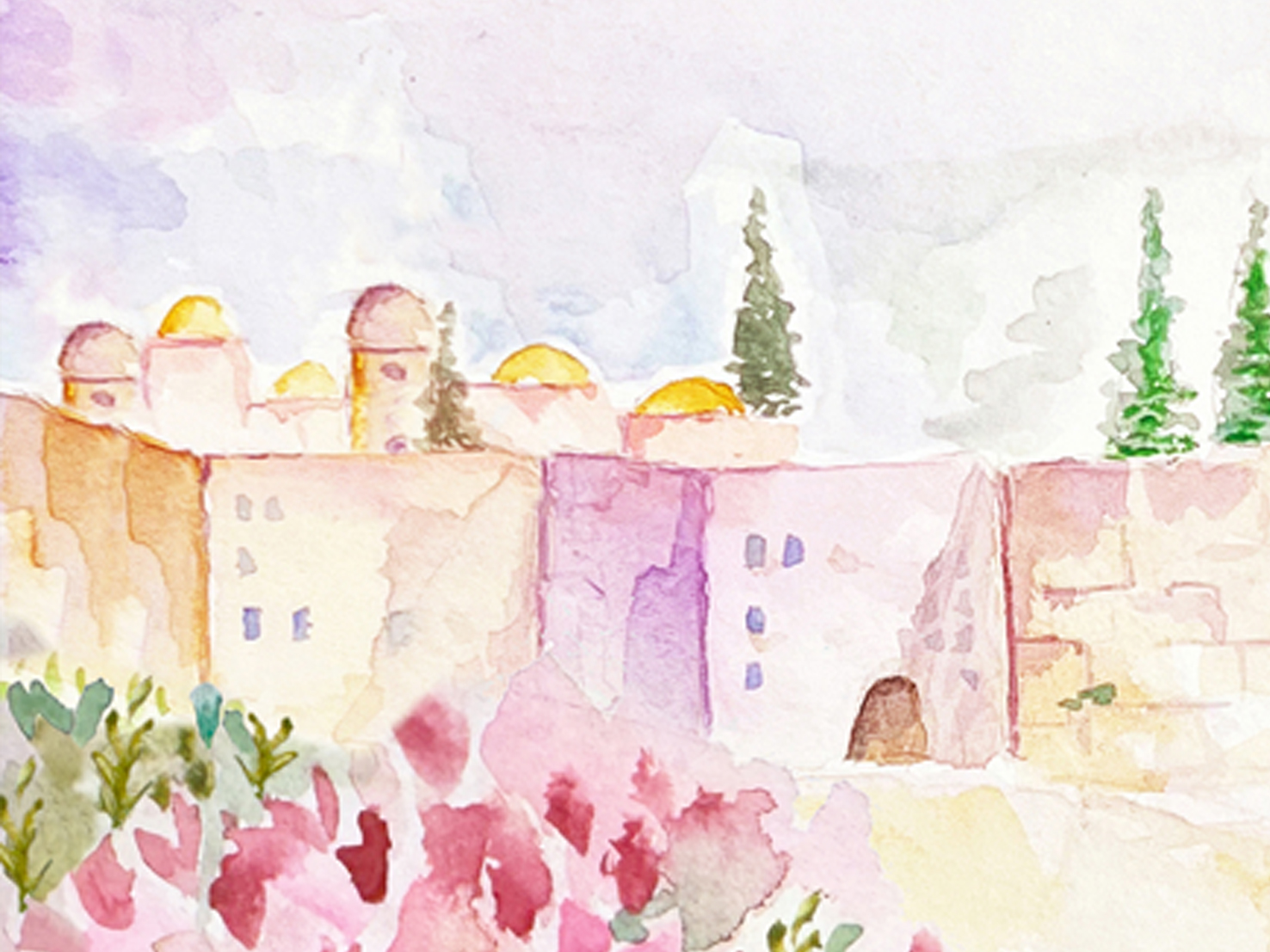 This Ketubah is made to order. You’ll get a printed version of this delicate watercolor illustration inspired by Jerusalem with your Personalized Details.