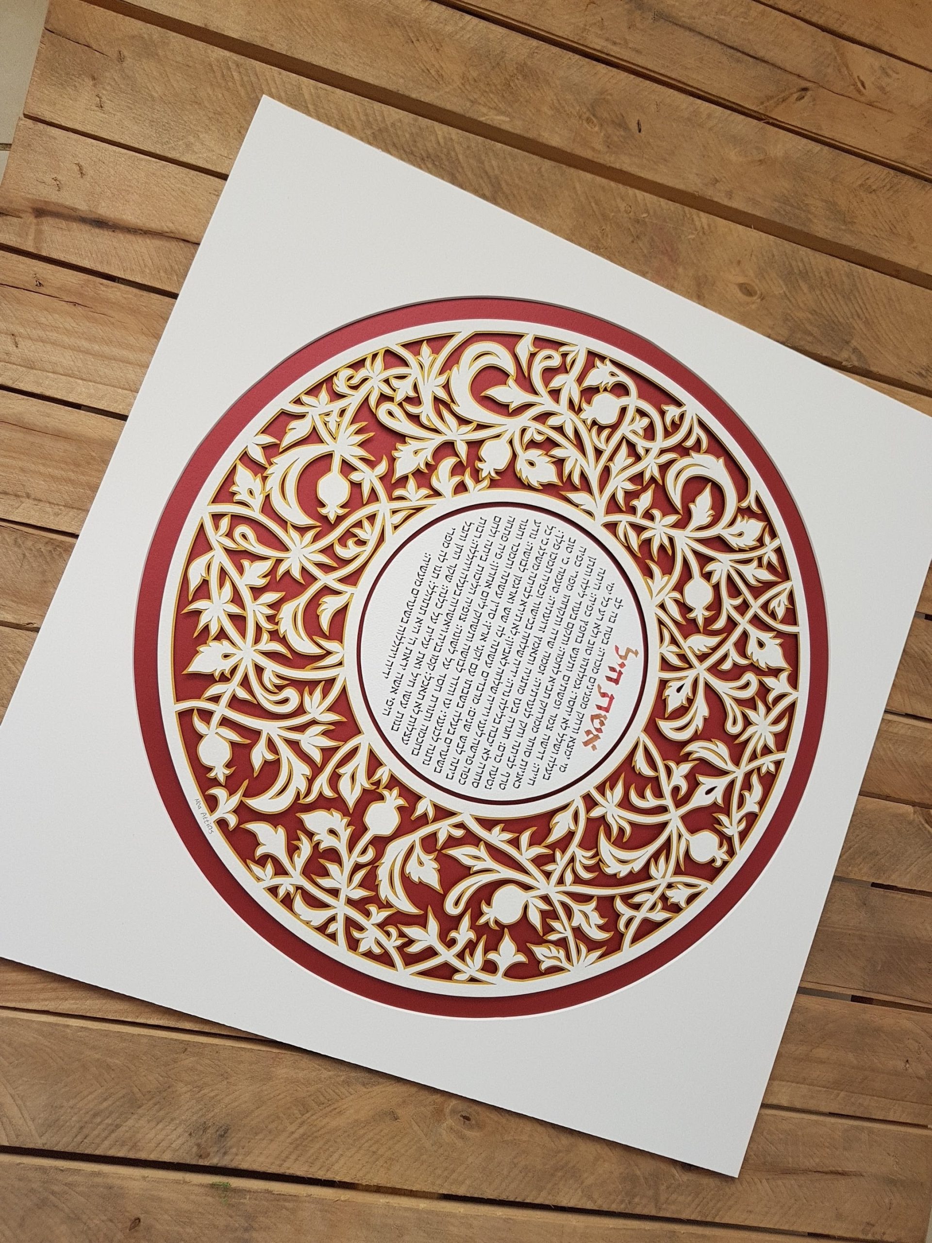 * Hebrew and English text – paper cut with matting 16×16 inch