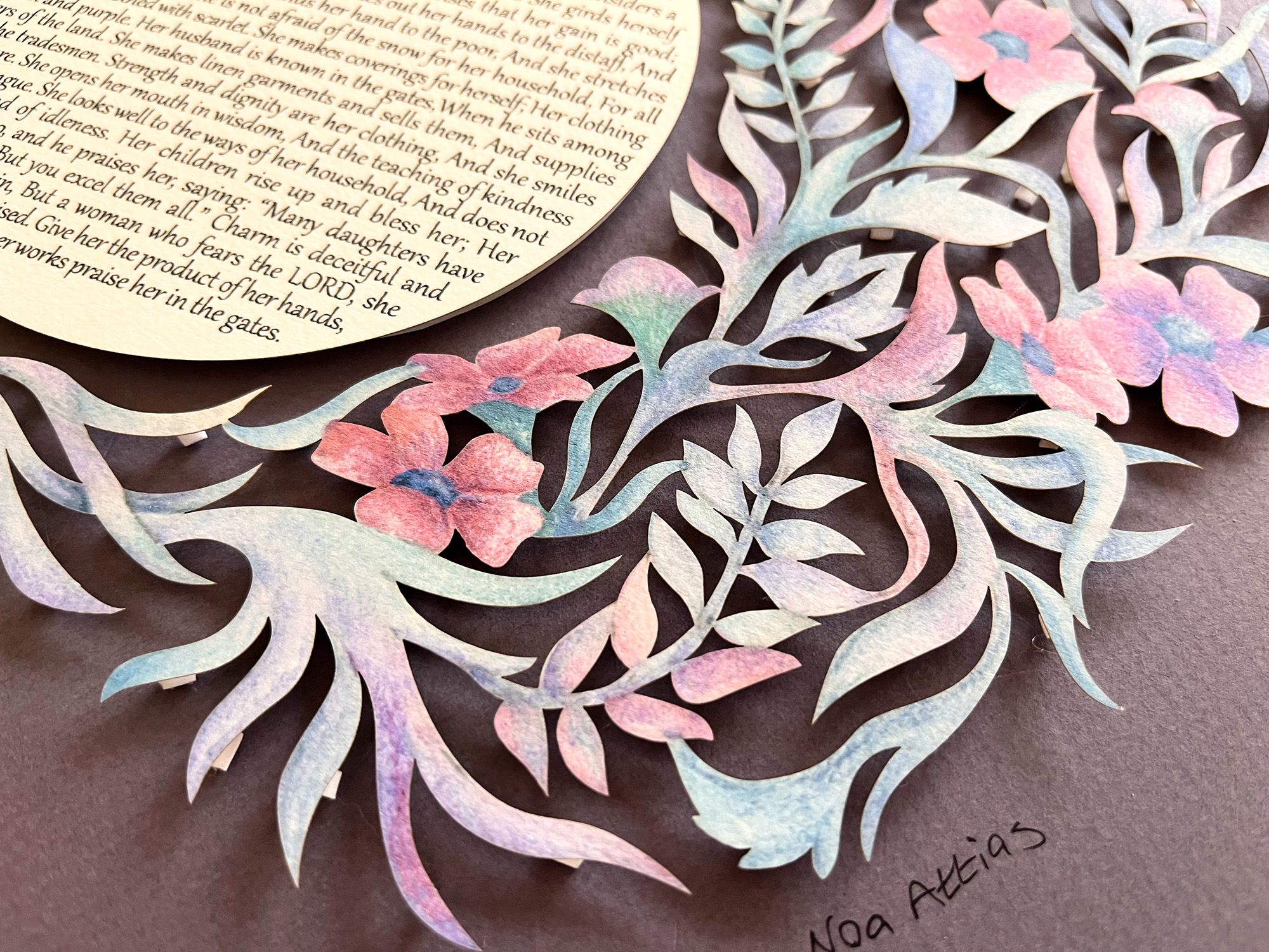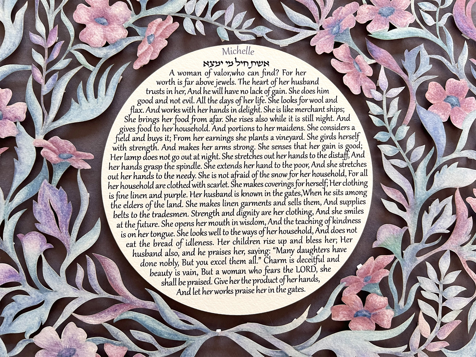 This Woman of Valor papercut makes a thoughtful housewarming gift for a wife. In addition, it suits anniversaries and other occasions that celebrate appreciation and devotion.